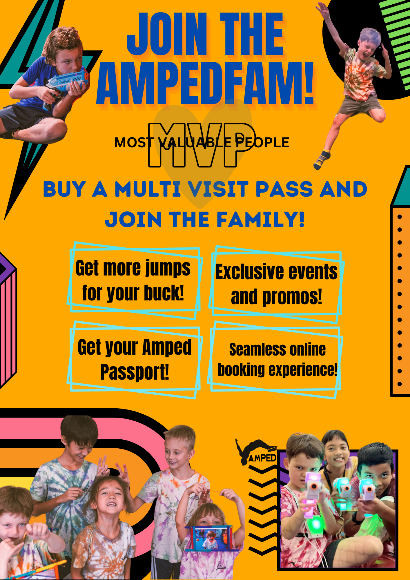 Our Multi-Visit Pass (MVP) is specially crafted for those who frequently visit us. So we want to keep our prices affordable for you.  Come be part of the AmpedFam!